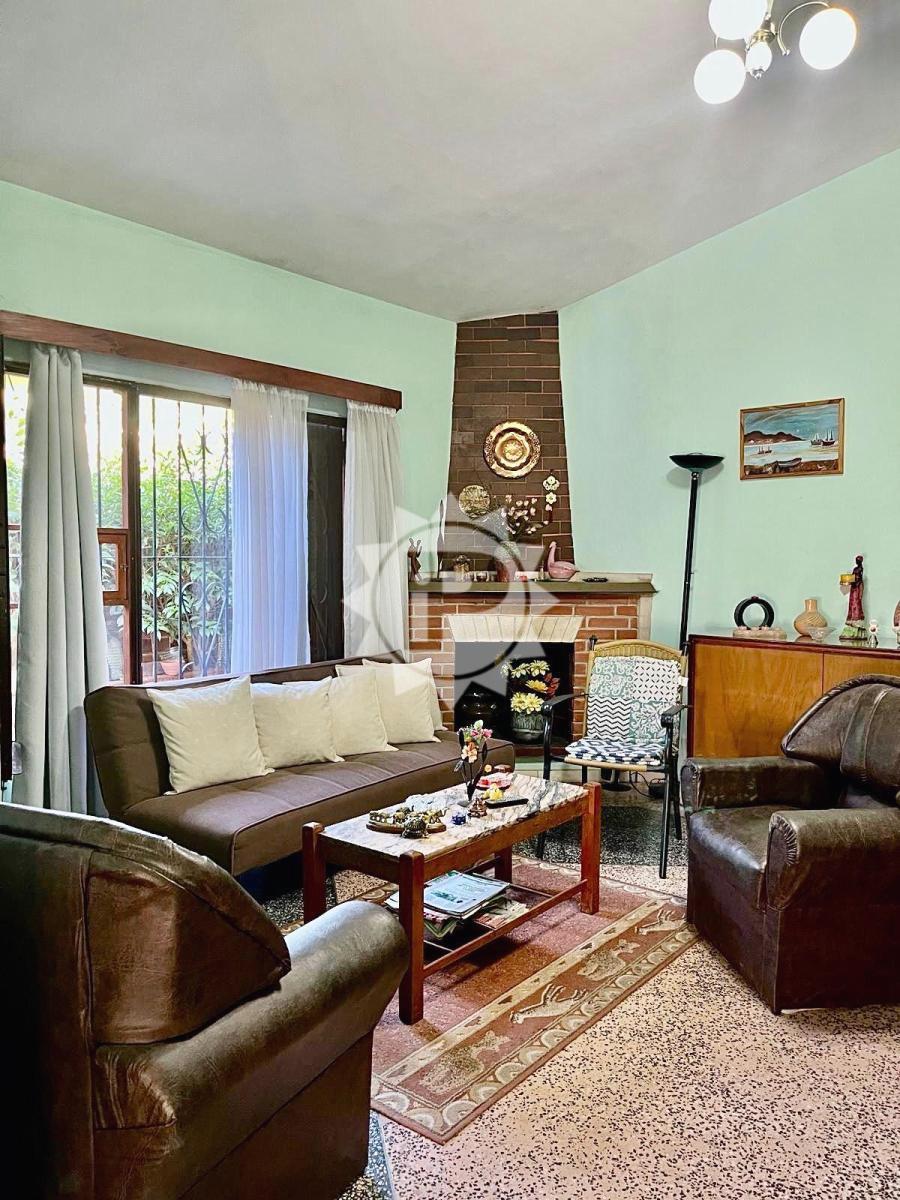 Living amplio con hogar, comedor, tres dormitorios, dos baños completos.