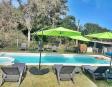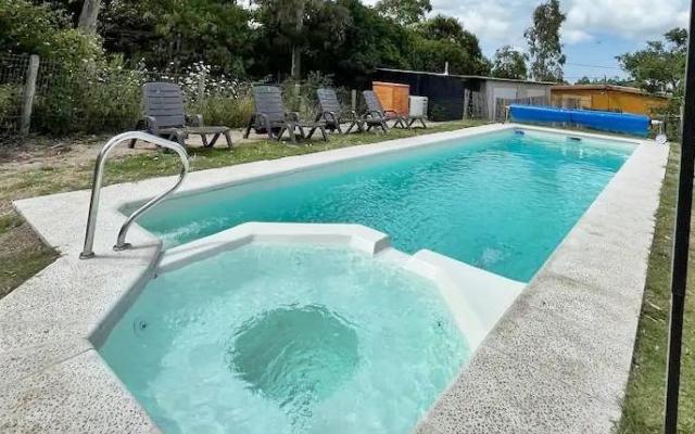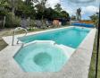 Al fondo jardin, piscina con reposeras y sombrillas ideal para disfrutar del verano.