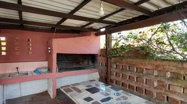 Cochera semi-techada, porch con mesada, seguido de parrillero techado.