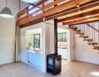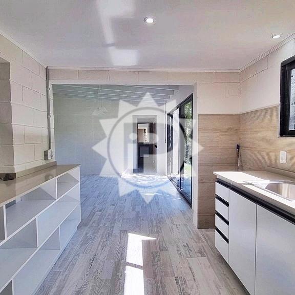 Amplio living con hogar, cocina integrada con bajo mesada y placares aereos, pisos flotantes.