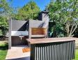 Fondo con jardín, parrillero, cochera con capacidad para dos vehiculos.